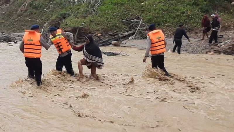 GAYO LUES |  Banjir yang melanda Kabupaten Gayo Lues dalam beberapa hari terakhir telah membawa dampak besar bagi kehidupan masyarakat setempat. Curah hujan tinggi yang mengguyur wilayah ini menyebabkan sejumlah infrastruktur vital lumpuh, termasuk putusnya jembatan penghubung antara Desa Badak Uken dan Desa Blang Temung di Kecamatan Dabun Gelang. Di tengah situasi darurat tersebut, kehadiran Batalyon D Pelopor Satuan Brimob Polda Aceh menjadi penopang harapan bagi warga yang terdampak.