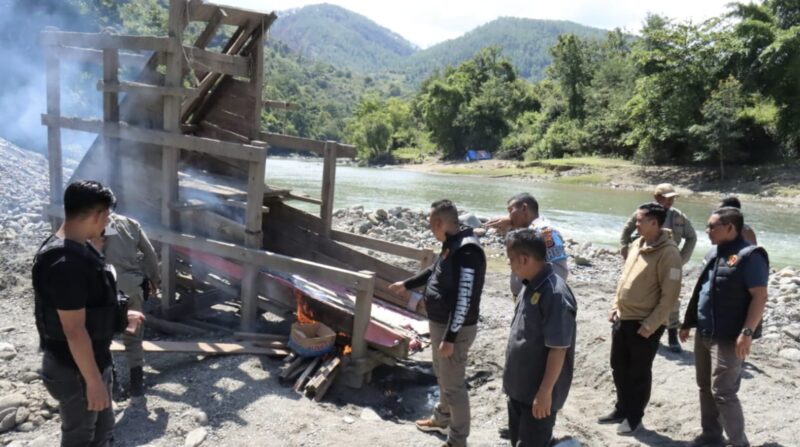 ACEH TENGAH – Polres Aceh Tengah bersama Satpol PP dan Tim Satgas Pengamanan PT Tusam Hutani Lestari (THL) menggelar razia tambang ilegal di Kecamatan Linge, Jumat, 19 September 2025. Langkah tersebut dilakukan usai viral pemberitaan media mengenai aktivitas tambang emas tanpa izin sehari sebelumnya.