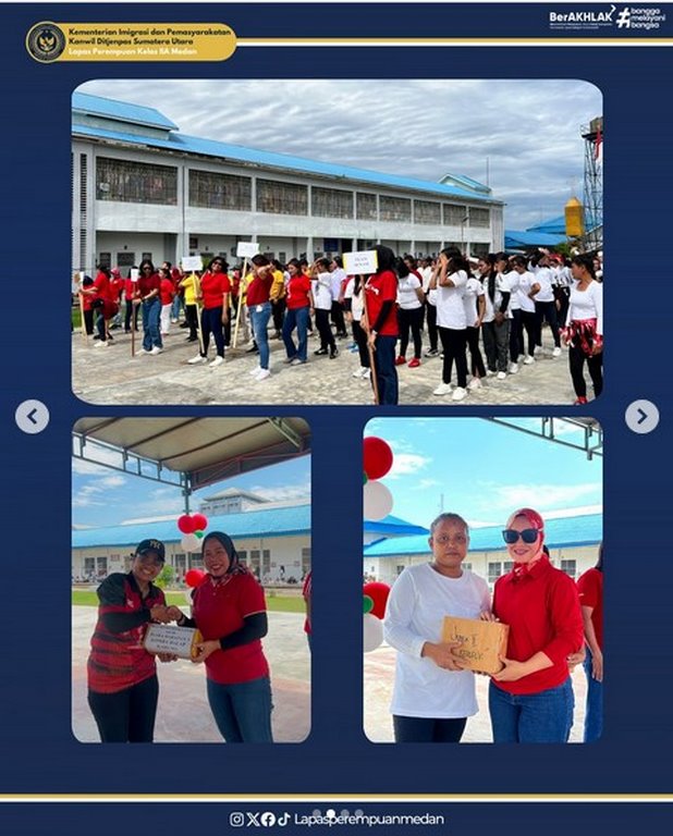 Medan – Lapas Perempuan Kelas IIA Medan menggelar acara penutupan Pekan Olahraga dan Seni (PORSENI) yang diikuti oleh petugas dan warga binaan. Kegiatan yang telah berlangsung selama beberapa hari ini menjadi momentum berharga dalam mempererat kebersamaan, menumbuhkan semangat sportivitas, serta menggali potensi seni dan kreativitas. Berbagai perlombaan olahraga dan seni telah diwarnai antusiasme tinggi, keceriaan, dan rasa kekeluargaan dari seluruh peserta.
