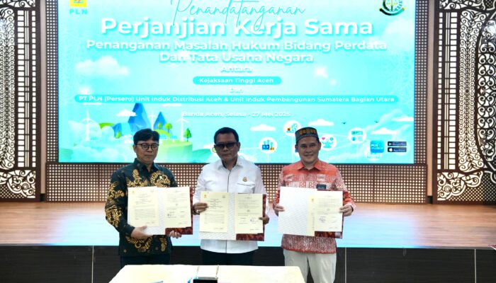 Banda Aceh – Kejaksaan Tinggi (Kejati) Aceh dan PT PLN (Persero) Unit Induk Penyaluran dan Pusat Pengatur Beban (UIP3B) Sumatera resmi menandatangani perjanjian kerja sama (PKS) di bidang perdata dan tata usaha negara. Penandatanganan dilakukan pada Senin (15/9/2025) di Banda Aceh.