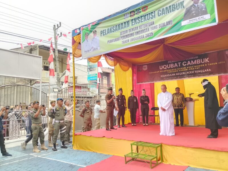 Kutacane – Kejaksaan Negeri (Kejari) Aceh Tenggara mengeksekusi hukuman cambuk terhadap lima terpidana kasus jarimah maisir atau perjudian. Eksekusi dilakukan di halaman kantor Kejari Kutacane, Rabu (27/8), dengan disaksikan masyarakat dan aparat penegak hukum.