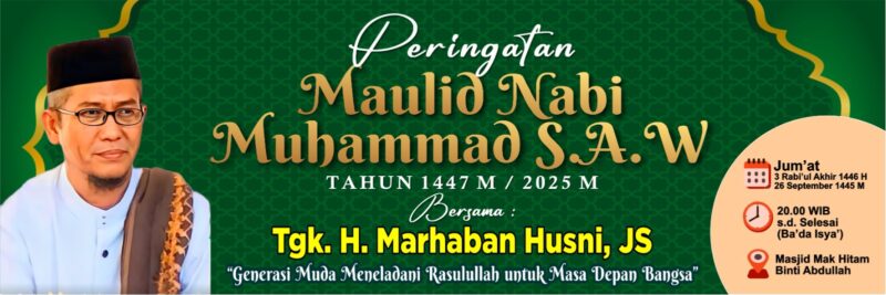 ACEH TENGGARA — Peringatan Maulid Nabi Muhammad SAW akan digelar di Masjid Mak Hitam Binti Abdullah, Kute Kuta Buluh, Kecamatan Bambel, Kabupaten Aceh Tenggara, pada Jumat malam, 26 September 2025. Kegiatan dimulai pada pukul 20.30 WIB atau setelah pelaksanaan salat Isya.