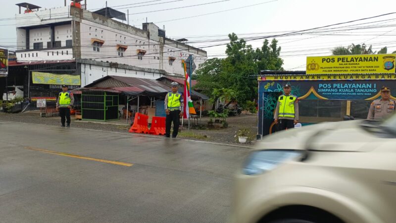 Batu Bara – Dalam rangka mendukung Operasi Ketupat Toba 2026 untuk pengamanan Hari Raya Idul Fitri 1447 H, personil Pos Yan (Pos Pengamanan dan Layanan) 1 Simpang Kuala Tanjung melaksanakan kegiatan gatur sore pada Sabtu (14/03/2026) sekitar pukul 16.50 WIB di depan Pos Pelayanan 1 Simpang Kuala Tanjung.