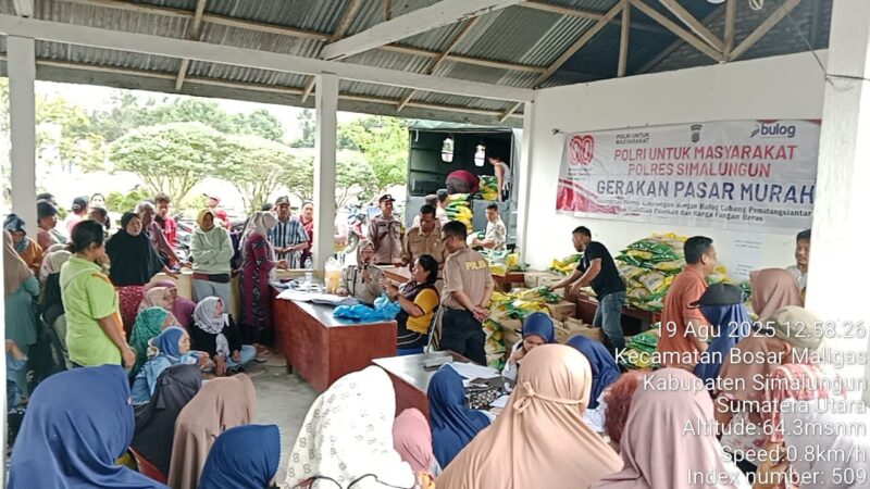 SIMALUNGUN – Polsek Bosar Maligas Polres Simalungun kembali menunjukkan komitmennya dalam menjaga keamanan dan ketertiban masyarakat melalui program “Polri Untuk Masyarakat” dengan menggelar pasar murah di Pekan Mingguan Kelurahan Bosar Maligas, Selasa (19/8/2025).