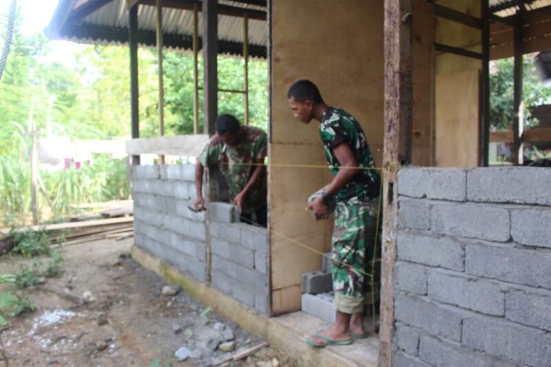 Salah satu sasaran yang tengah dikebut yakni perehaban Rumah Tidak Layak Huni (RTLH). Dalam proses pengerjaannya, tampak personel TNI dan warga saling bahu-membahu, mulai dari penyusunan batako hingga pengerjaan dinding rumah.